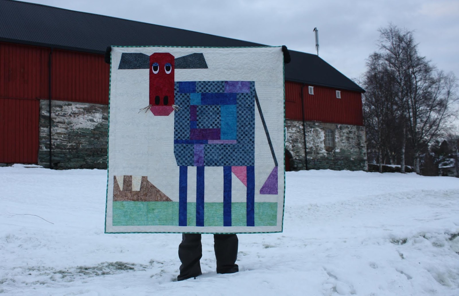 The theme for the December Ambassador project was Whimsical and Wonky, and I knew right from the start what I was going to make. The inspiration was this Square Cow that I made in 2014, a little mug rug of 7"x 8" for a blog hop. She has now gotten a BIG SISTER!